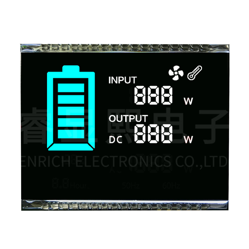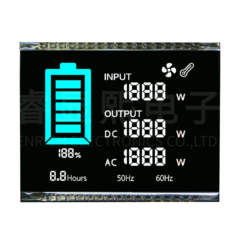 UPS電源lcd顯示屏廠家BTN段碼單色液晶屏定制黑底白字VA斷碼屏